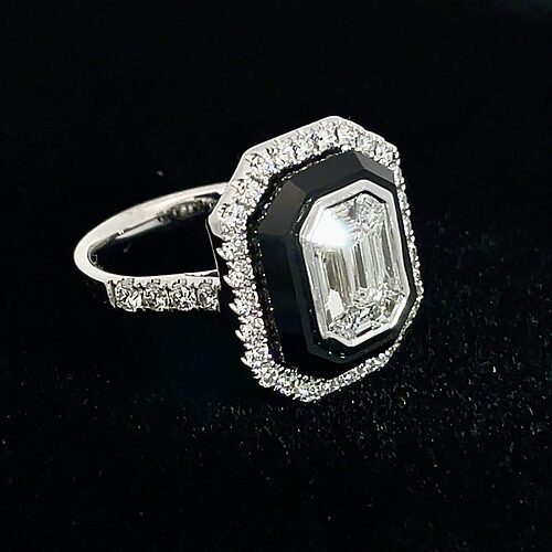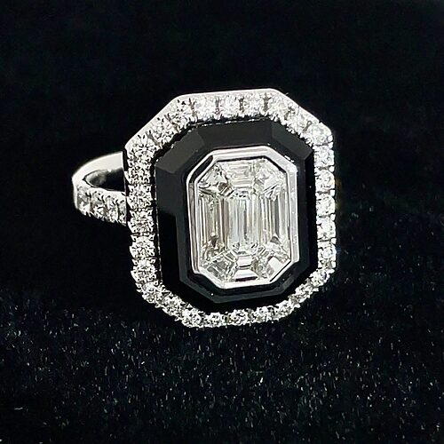 14k White Gold Mosaic Halo Diamond & Black Onyx Ring