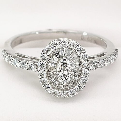 14k White Gold Emerald Cut Diamond Solitare Engagement Ring