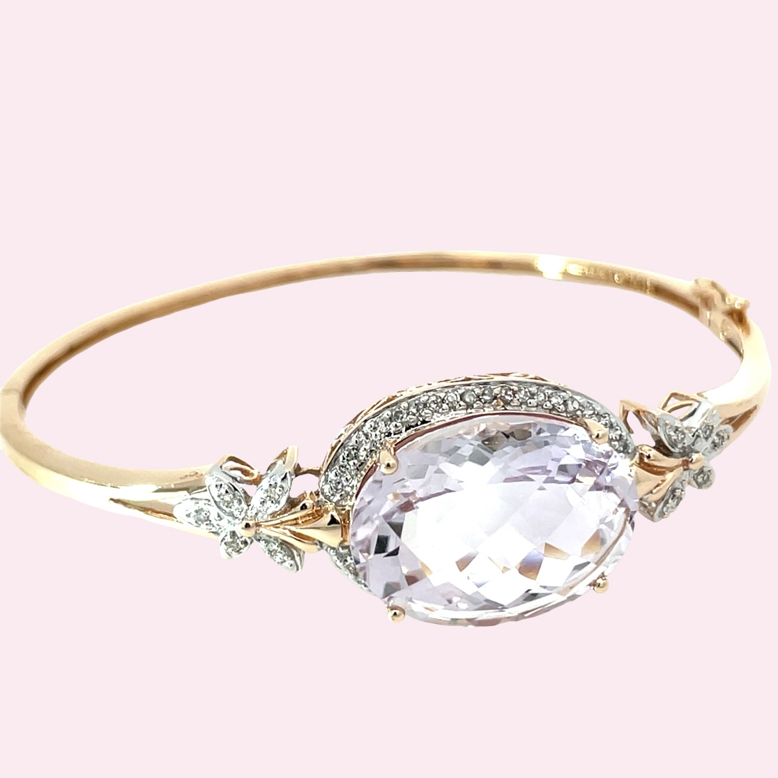 SKU: EST-03726Categories: Estate, Estate Bracelets, Estate Gold, Gold Bracelet, Gold Jewelry, UncategorizedTags: 14k, bangle, Diamond, Gold, Morganite, Rose