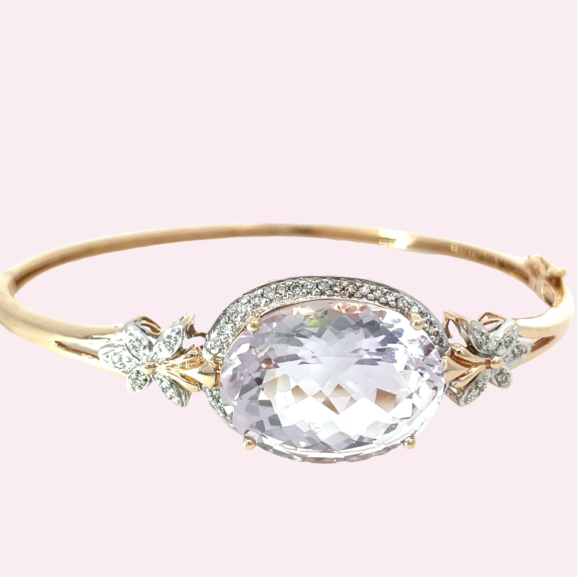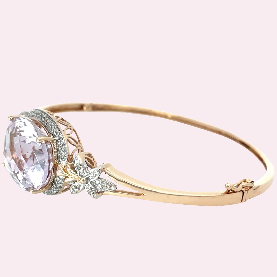 14k Rose Gold Morganite & Diamond Bangle
