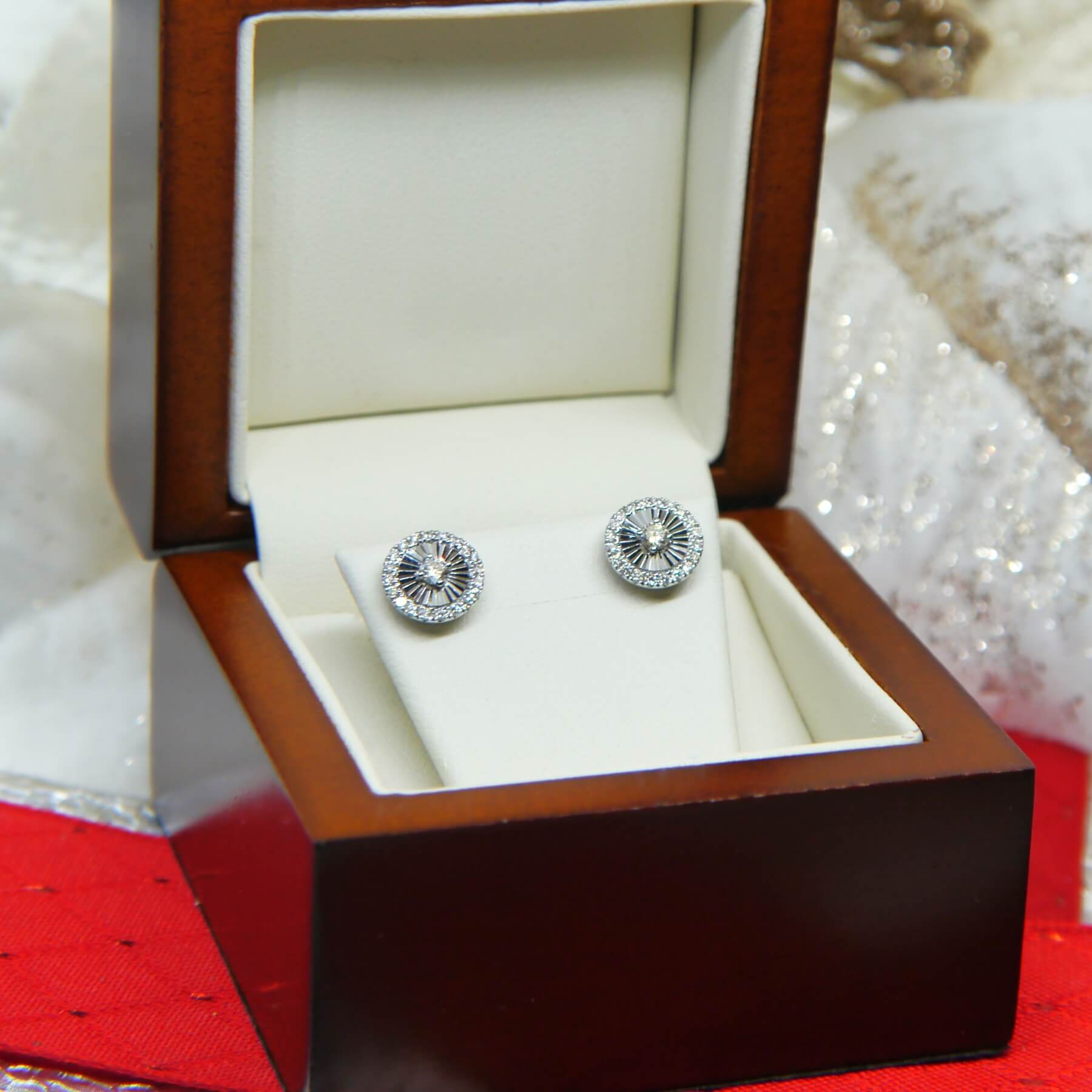 14k White Gold Miracle Illusion Diamond Post Stud Earrings