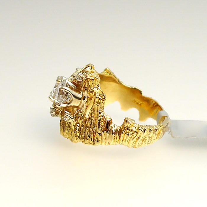 Unique and sculptural! Vintage, lost wax diamond ring crafted in 18k yellow gold.