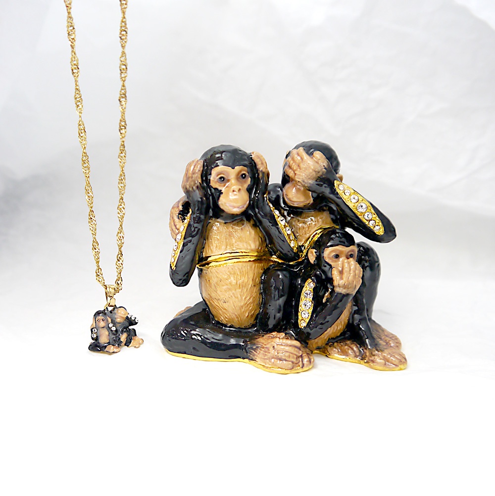 “Hear no evil” Wise Monkey Trinket Box with Matching Mini Necklace