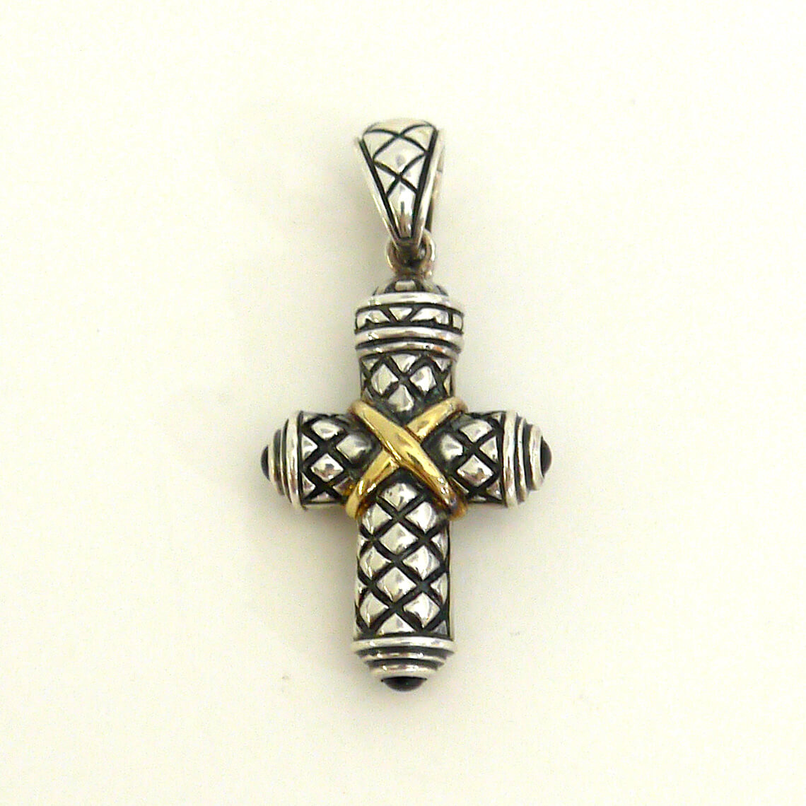 Designer Nancy & David 14k Yellow Gold and Sterling Silver Quilted Cross Pendant